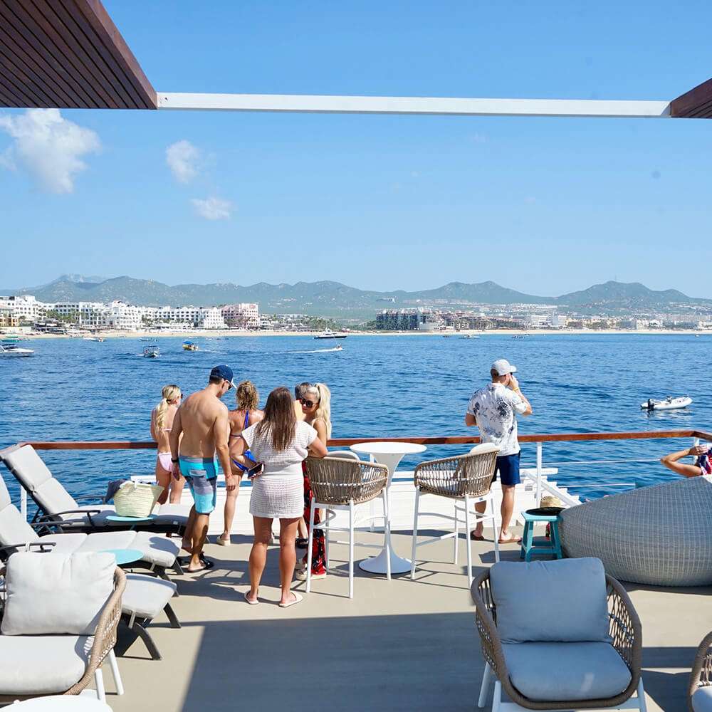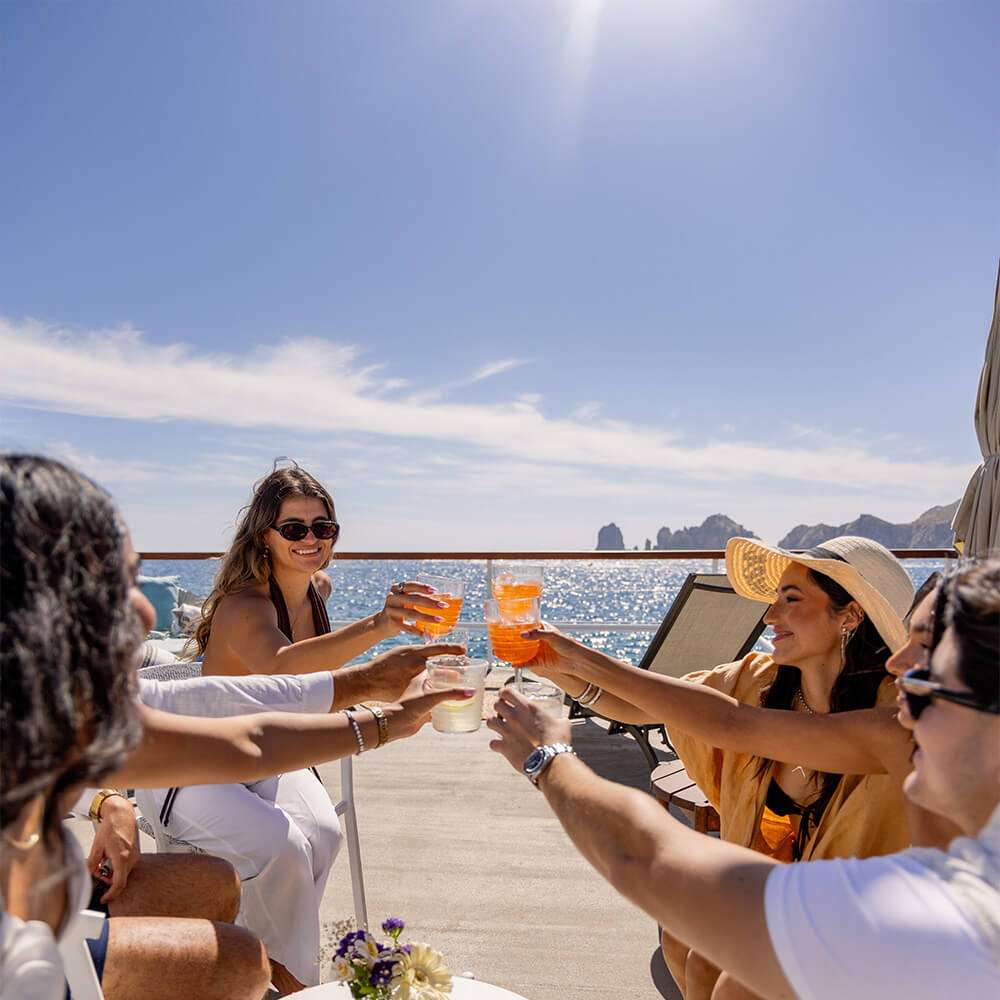 Explore Cabo’s stunning seaside attractions — including The Arch, Pelican Rock, Lover’s Beach, and the Sea Lion Colony. Spot playful dolphins, marvel at majestic whales during migration season, and unwind with a refreshing beer or freshly made margarita as you soak in breathtaking 360-degree ocean views.