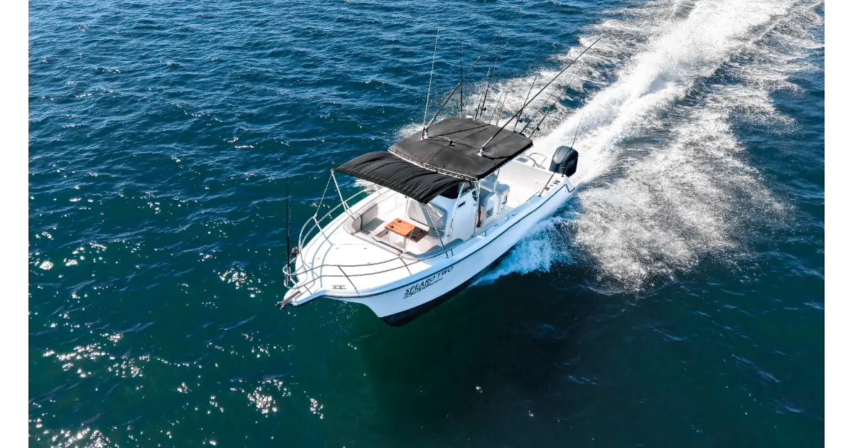 Smooth, steady, and made for the ride, this 30 ft power catamaran delivers twin-engine performance, extra space, and a full bathroom onboard. It’s ideal for half-day trips to fish, dive, or explore the coastline in comfort with top-quality gear.